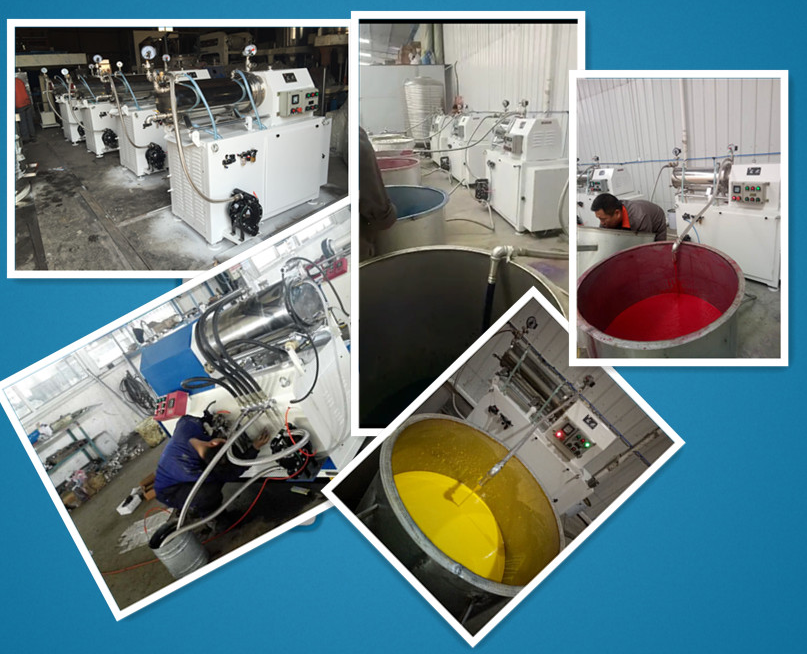 臥式密閉砂磨機是一種采用濕法研磨分散、筒體水平安裝、連續密閉生產的化工設備;型氣動雙隔膜泵(或齒輪泵)將經過預分散、潤濕處理的固液相混合物料輸入筒體內,物料和筒體內的研磨介質一起被高速旋轉的分散器組所攪動,使物料中的固體顆粒和研磨介質間產生強烈的碰撞、剪切,在短時間內達到物料顆粒的磨細和分散聚集體的目的。是生產油漆、油墨、染料等產品的常用設備